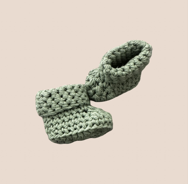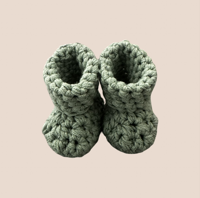 Keep tiny toes cozy in style with these soft, hand-crocheted baby booties. Made with love from plush, soft wool these booties are gentle on delicate skin while providing warmth and comfort. The lovely green color makes them perfect for your little ones feet during the colder months.