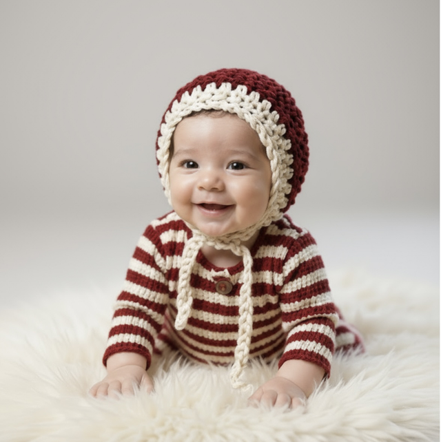 Bring cozy Christmas vibes to your child’s wardrobe with this adorable handmade crochet Christmas bonnet.